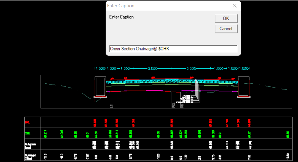 Select base reference point for all the chainages, then select Caption Insertion Point.