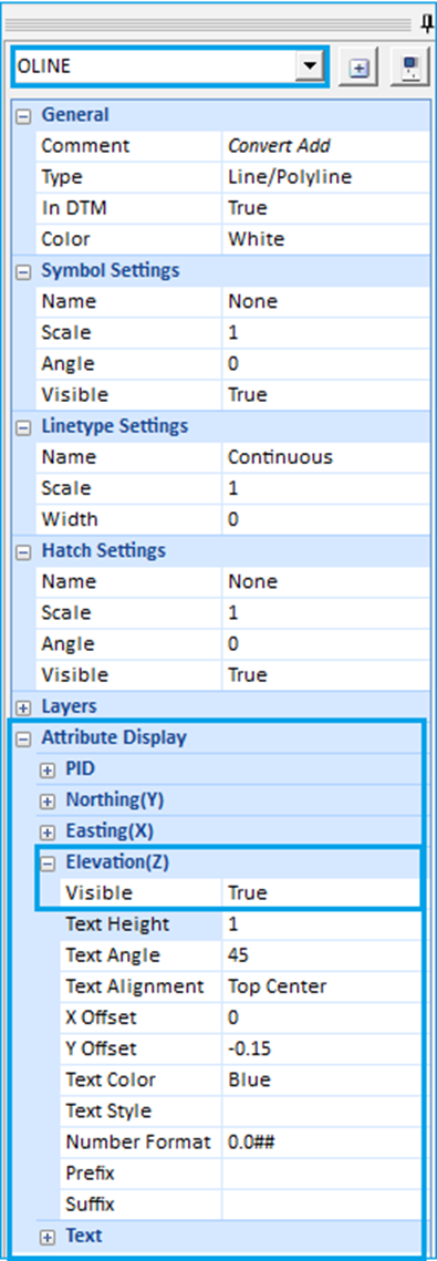 Step 5: In the Library, choose your code. Under "Attribute Display," set "Elevation (Z)" to "Visible: TRUE" to display the elevation for the selected offset.