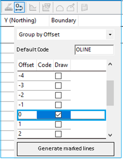 Step 3: Select center offset (0) or the desired offset to display the elevation and click on "Generate marked lines."