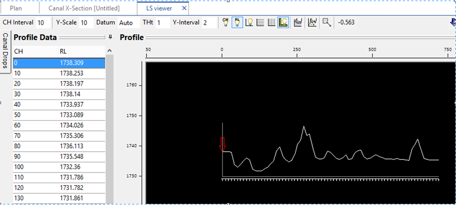 LONGITUDINAL SECTION (LS) view will open for the selected line.