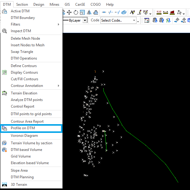 Step 1: After importing the data, create a polyline for which the profile is to be created. Go to DTM menu and select Profile on DTM option