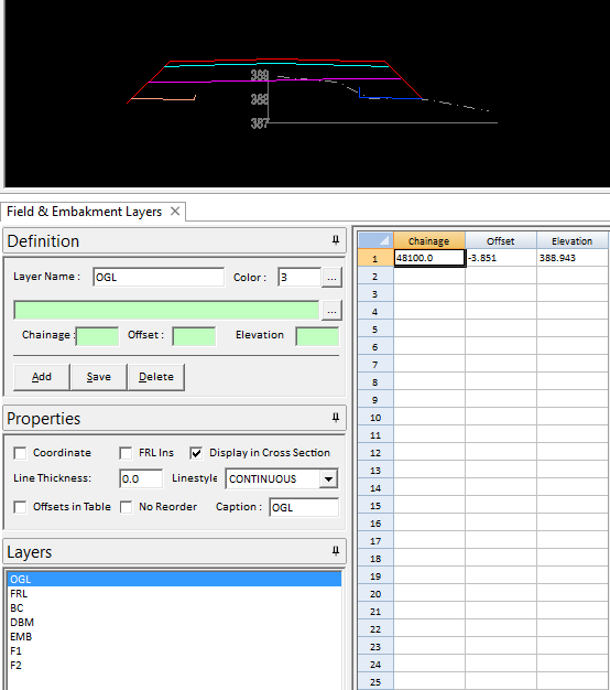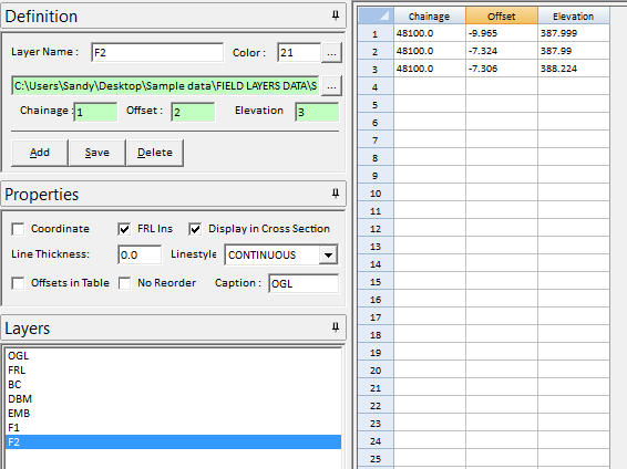 Offsets in Table: To display offsets of the field layer in the coordinate table
