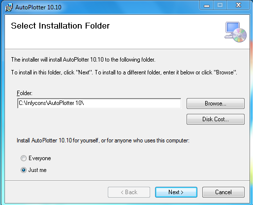 4. The installation location can be set as per the requirement. The default directory is C:\Infycons\AP10. If you want to change the default location, select the appropriate folder where you want to install using the browse button. Continue by clicking the Next button.