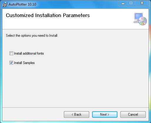 5. "Customized Installation Parameters" window will appear, continue by pressing Next button after selecting the required option/s.