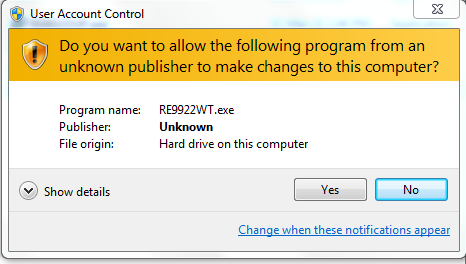 9. Once the Installation is completed run the updates available In Install kits/Updates/RE9 Updates/RE9922WT.exe and click on yes to continue.