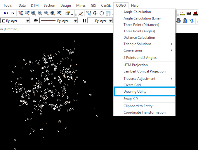 Step 1: import data and click on Drawing Utility under COGO menu