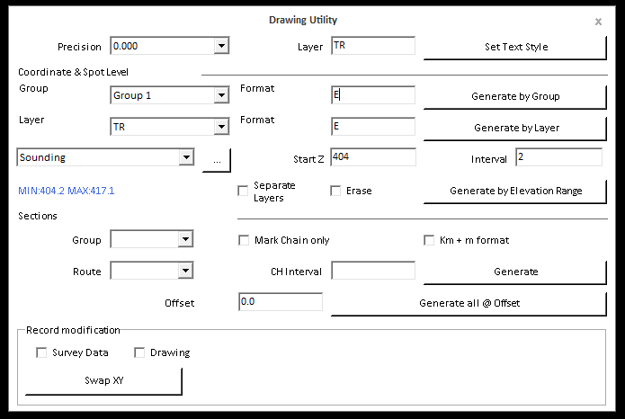 2: In Drawing Utility, select as per your requirements such as Decimal Precision, Layer Name for the elevation text.
