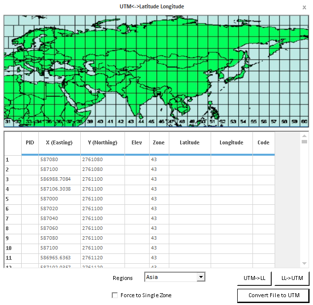 If you are having latitude and longitude data, the same procedure holds good. Just paste Lat Long in the respective columns and click on LL->UTM button.